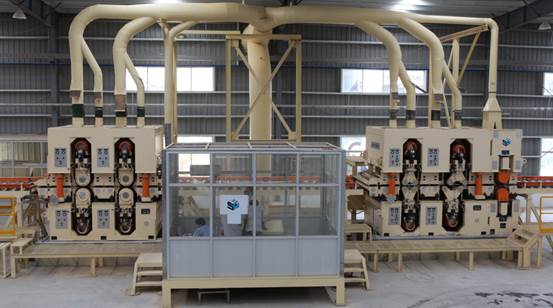 4.   優(yōu)化砂架驅動(dòng)方式和功率配置,提高傳動(dòng)效率,降低砂光能耗10%,降低砂帶消耗16%。適宜的接觸輥直徑和壁厚比、特殊設計的無(wú)間隙接觸輥偏心裝置和高標準動(dòng)平衡精度(≤1g)。大直徑耐磨粗砂輥,輥徑可達ф450mm,提高加工能力和輥筒鋼性。