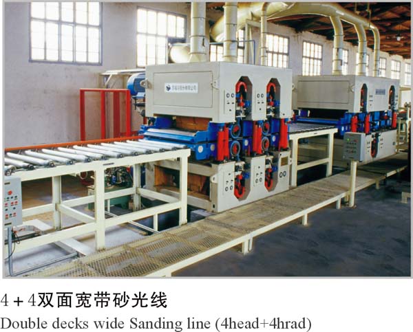 毛板在砂光前先堆垛貯存一段時(shí)間,使膠進(jìn)一步固化以及板的含水率與大氣的相對含水率趨于平衡,達到板的穩定性和增加板的強度。毛板由叉車(chē)送入進(jìn)料輥臺,經(jīng)砂光機砂光后分等、堆垛、包裝入庫。
